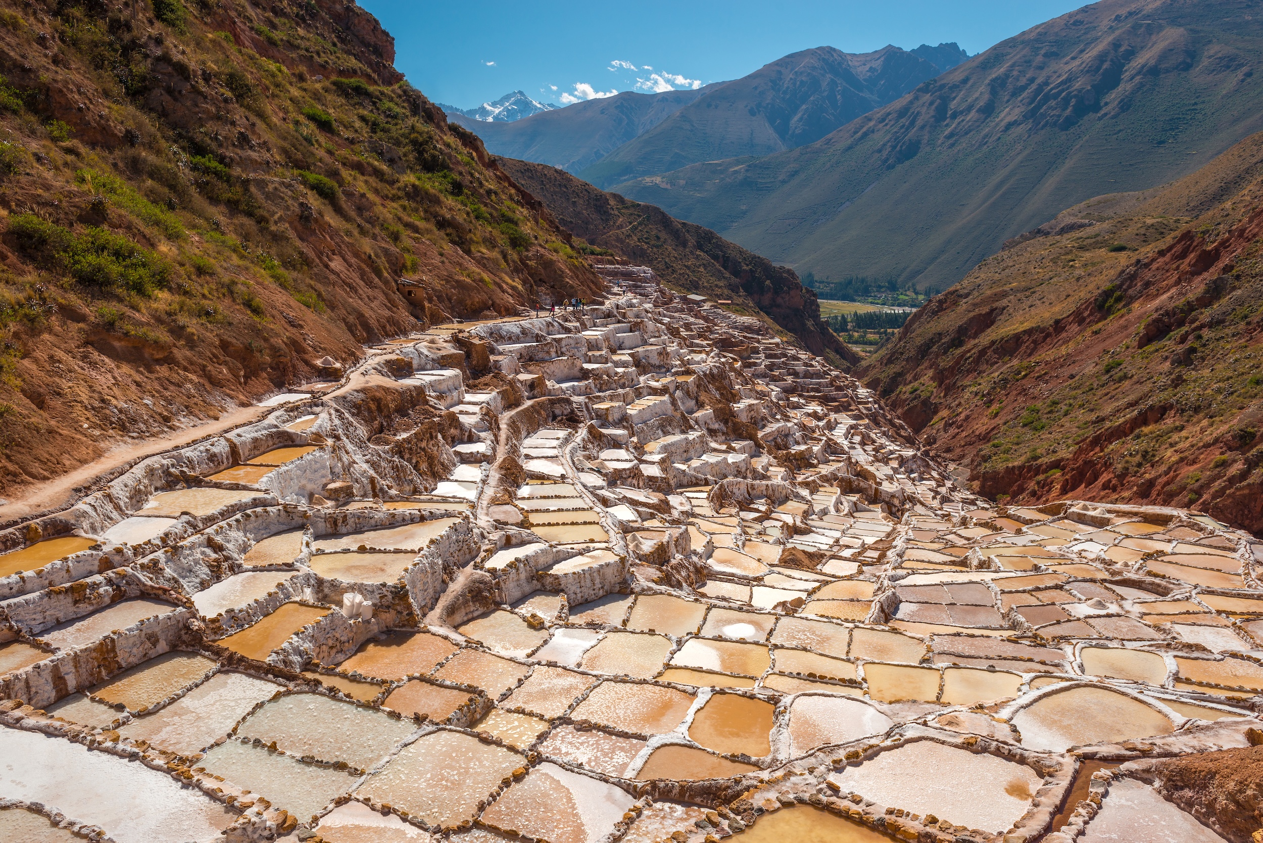 • Walk thorugh the Salt Mines of the Maras Community, see the thousands of salt pans carved into the mountainside, where salt extraction has been practiced since Inca times.